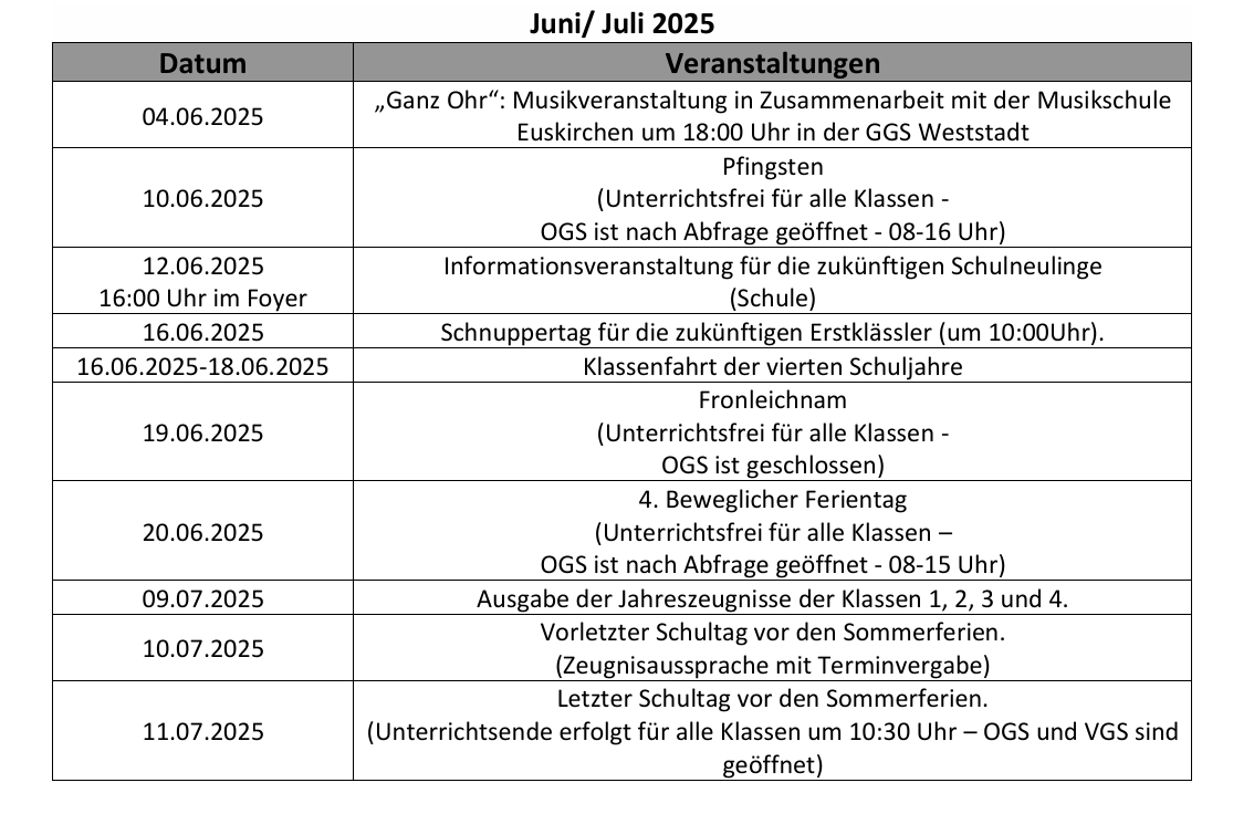 Termine Juni Juli